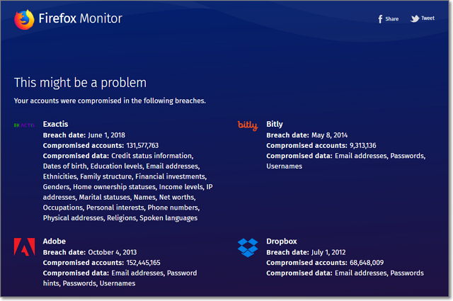 すぐに、どの流出事件のリストに載っているかを教えてくれます。