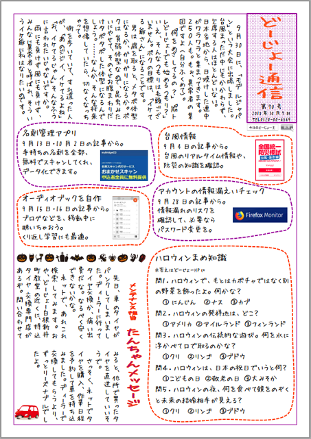 「どーじょー通信」10月号です。