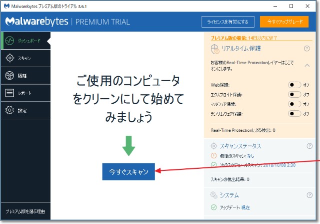 有料ソフトですが、リアルタイム保護を使わなければ無料です。