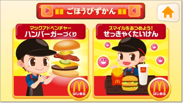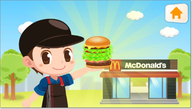 ビックマックなど、実際のハンバーガー作りの手順を学習します。