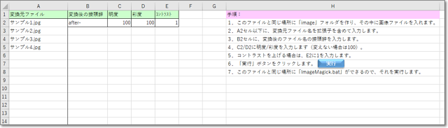 フォルダ内の画像ファイルすべてを変換する場合は、「~2」シートを使ってください。