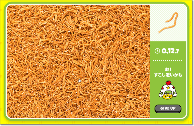 敷き詰められた麺の中から、ある形の麺を探し出します。
