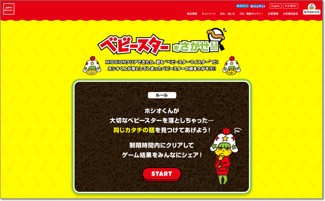 敷き詰められた麺の中から、ある形の麺を探し出します。