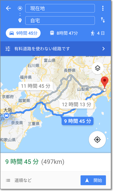 Google地図で、自宅への経路を調べてみると・・・