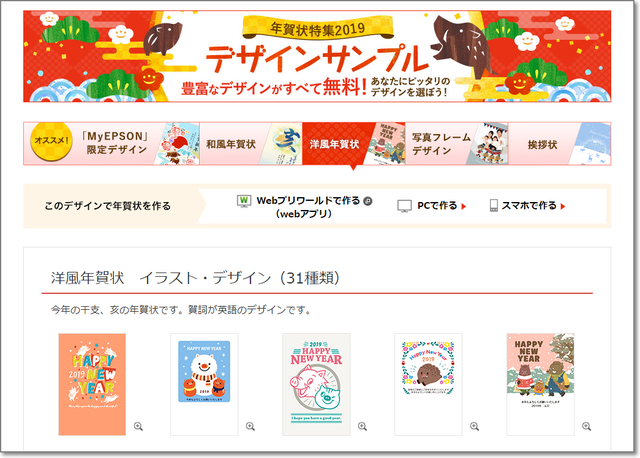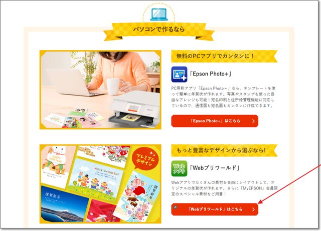 「パソコンでもスマホでも年賀状づくりがカンタン」ボタンをクリックして、