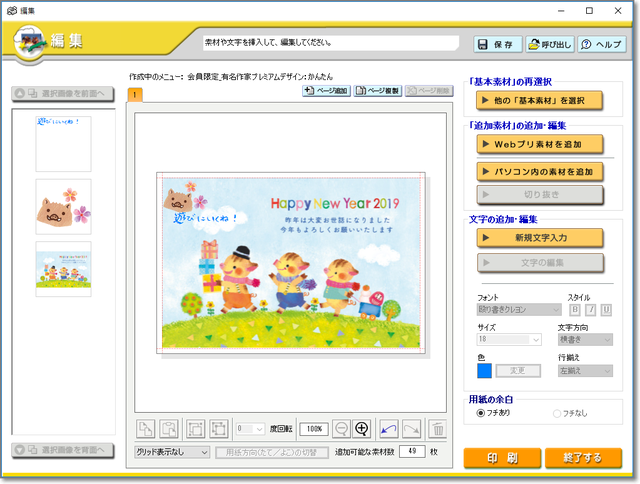 テンプレートだけでなく、文字や手持ちの画像を入れることもできます。