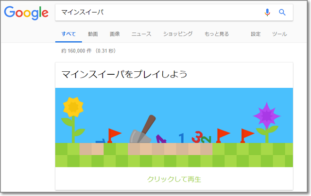 「窓の杜」記事で、「Google検索でマインスイーパが遊べる」というので、