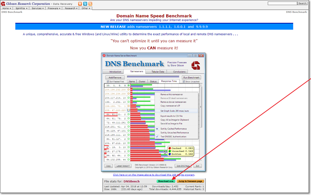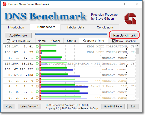 いろいろなDNSサーバーの速度測定ができるソフト。