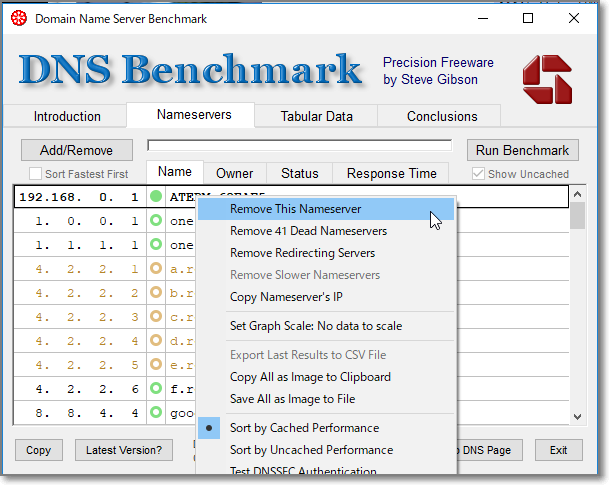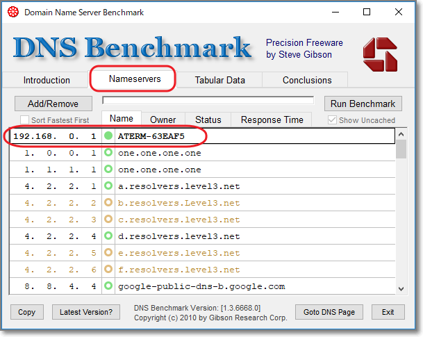 「DNS Benchmark」に戻って、「192.~」は右クリック