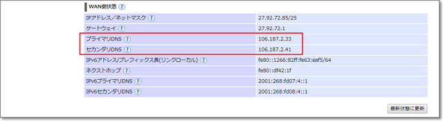 現在のDNSサーバーが「192.~」で始まっている場合は、LANでルーターに飛んでるだけ。