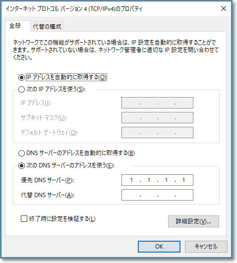 DNSサーバーがよほど遅い場合や、どうしても「1.1.1.1」を使ってみたい場合は、