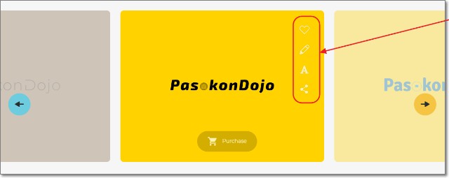 お好みのロゴマークを中心に置くと、右側にツールアイコンが出ます。