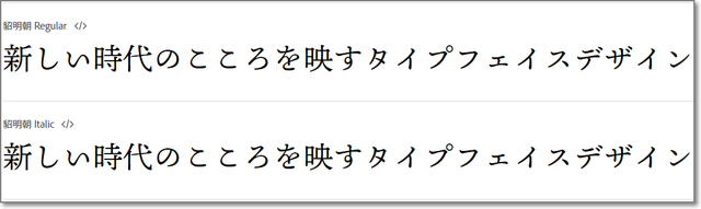 レギュラー・イタリック2種類ありますが、全角文字は同じ。
