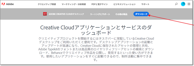 次に、Creative Cloudサイトで、「ダウンロード」をクリック