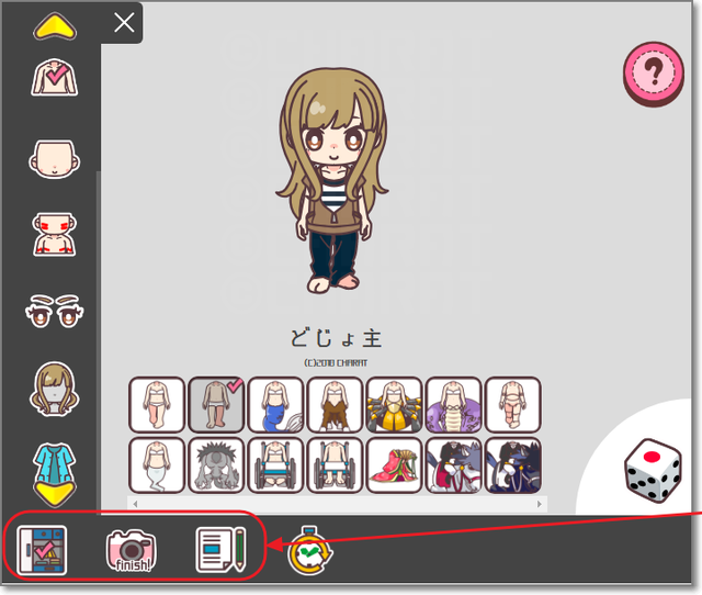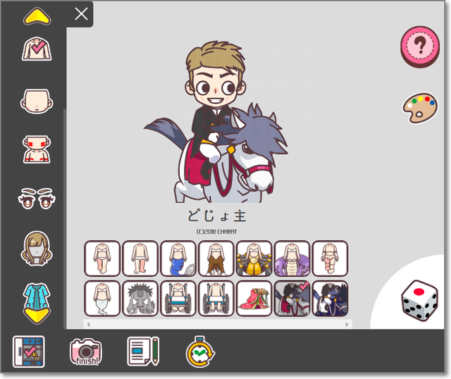 下のツールバーで、左側から「パーツ選択」「完成」「名前入力」。