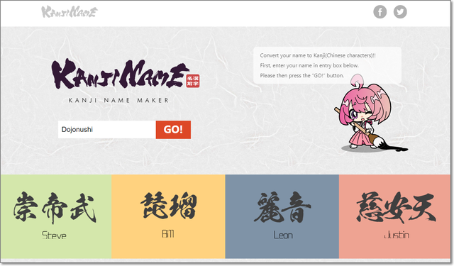 その他、アテ漢字での名前ジェネレータ「KanjiName」も。