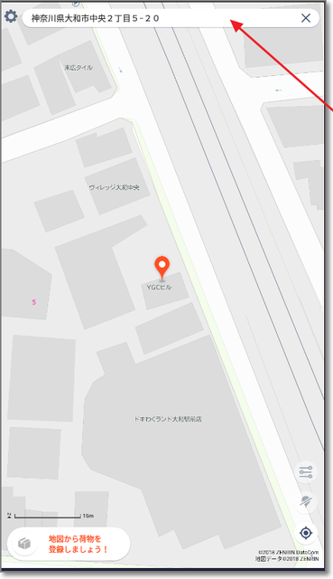 郵便番号や住所で検索し、目的の建物を長押しすると・・・