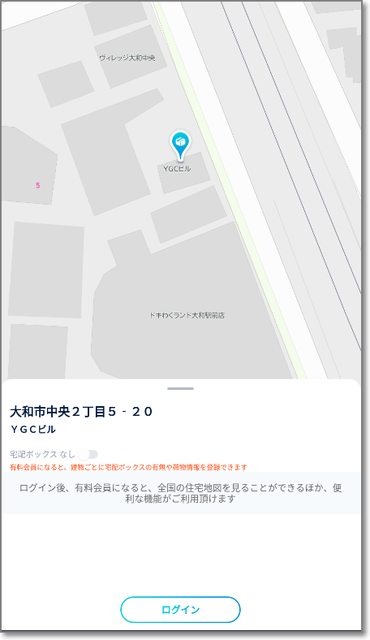 有料登録しないと、ゼンリン地図(表札情報まで表示)や荷物登録の利用はできません。