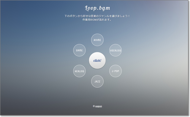 「Loop.bgm」は、ジャンルによってプレイリスト化したサービスです。