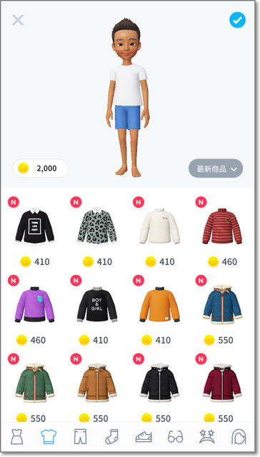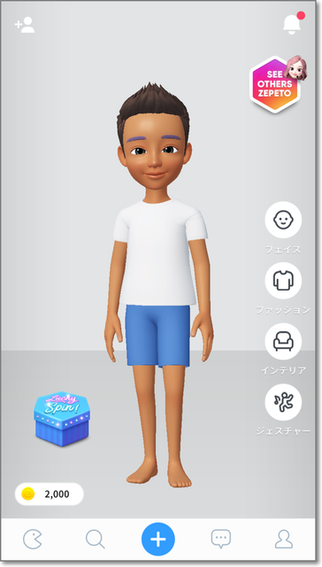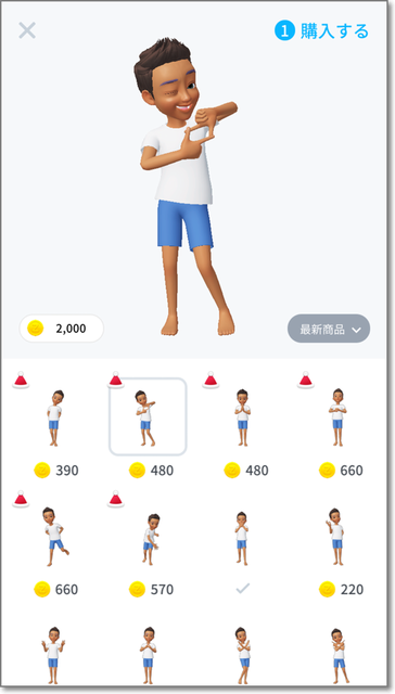 右側のボタンで、洋服やジェスチャーなどオプションが選べます。