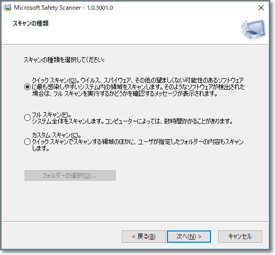 通常は、「クイックスキャン」でまず様子を見るのがいいかな。