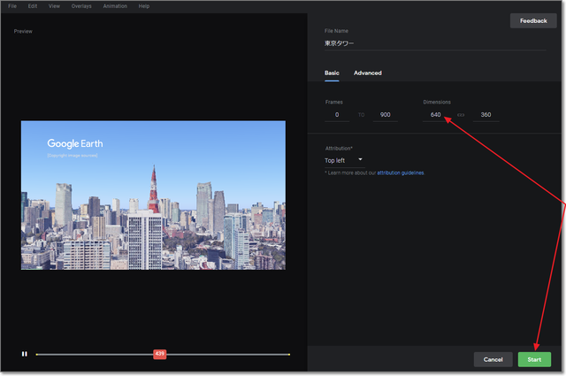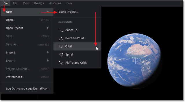 今回は、「Google Earth Studio」のテンプレートを使って、