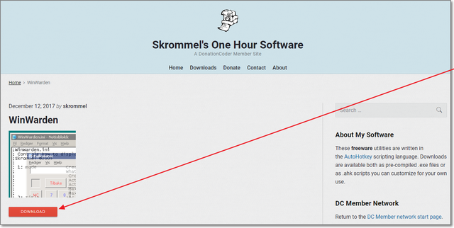 「WinWarden」のページで、「DOWNLOAD」をクリック