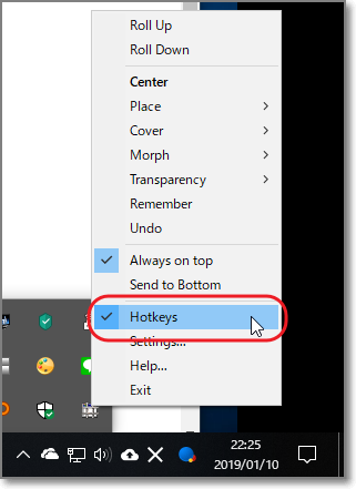 タスクトレイアイコンを右クリック→「Hotkeys」にチェックを入れます。