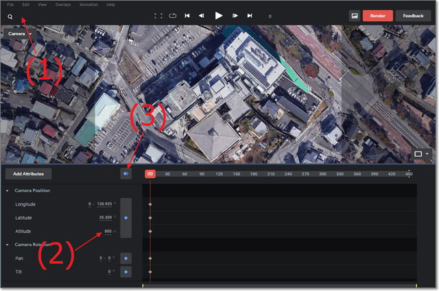 今回は、「Google Earth Studio」で、回転の練習をします。