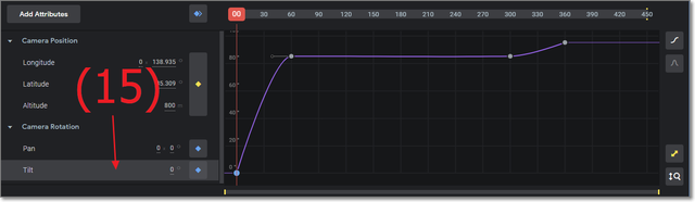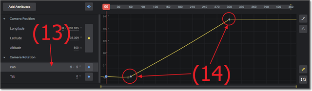 (13)「Pan」のところをクリックすると、動きが曲線で表示されます。
