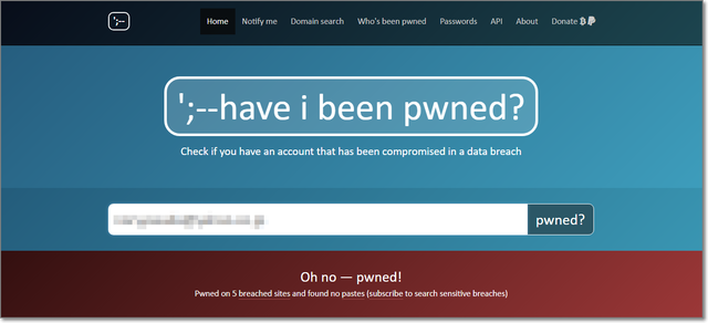 流出件数も「Pwned on ○ breached sites ~」と表示されます。