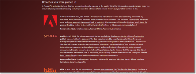 下にスクロールすると、流出リストに載っているWebサービスが表示されます。