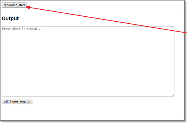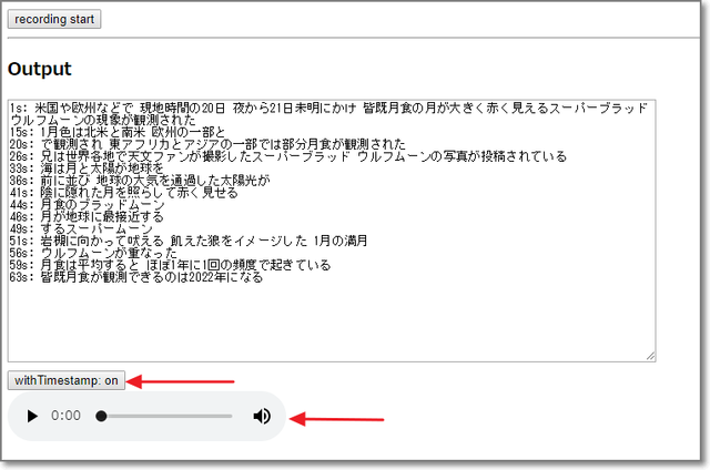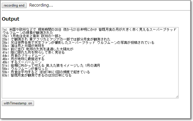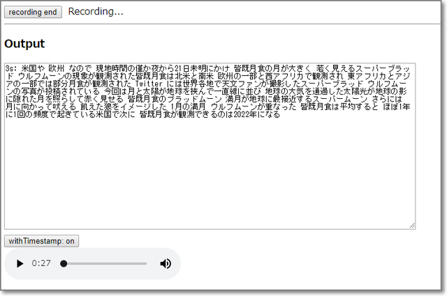 「recording start」をクリックしたら、読み上げ開始。