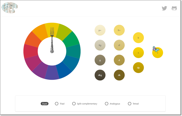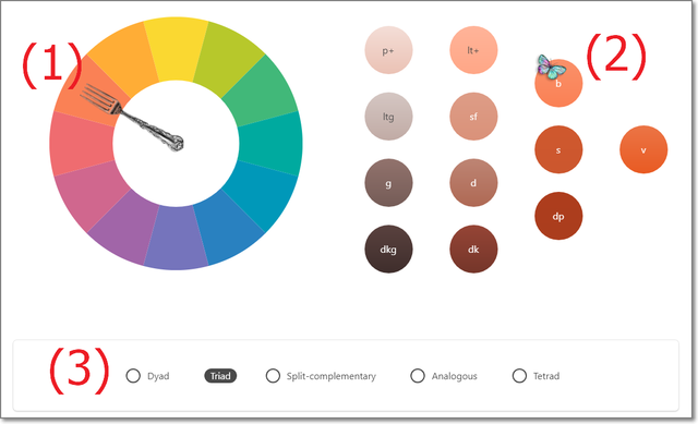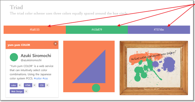「yum-yum COLOR」は、色相環から1つ選んで、色調を1つ選んで、