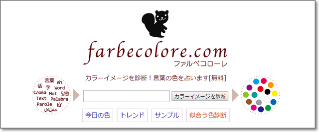 言葉を入力して、「カラーイメージを診断」をクリックするだけ。