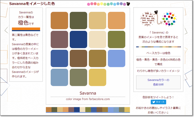 「Savanna」と英語で調べると、まったく違うイメージカラーに。