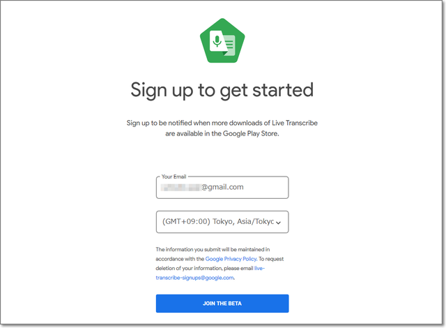 メールアドレスを入力し、タイムゾーン(Select your time zone)を選択。