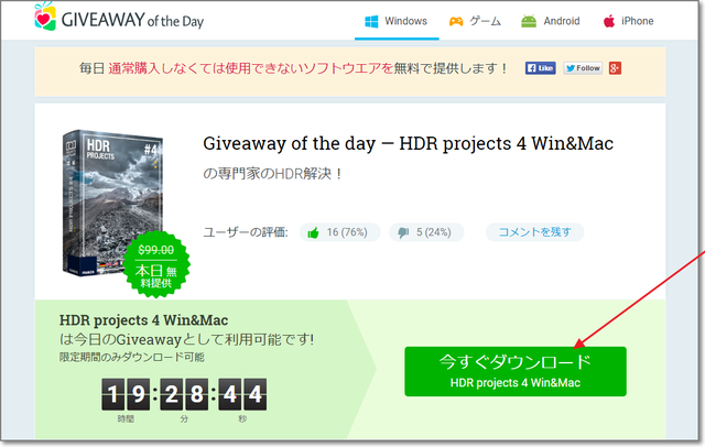 Giveaway of the Dayのページで、「今すぐダウンロード」