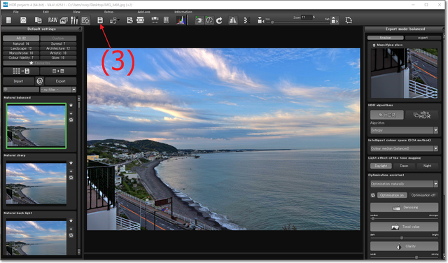 (1)「HDR from a single image」をクリックして、用意した写真を開きます。
