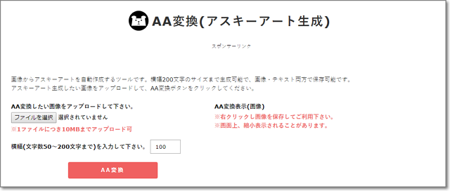 画像からアスキーアート(文字絵)を作ってくれるWebサービス。