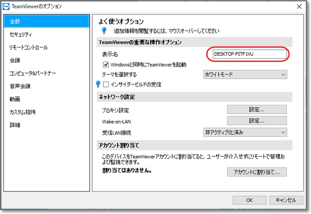 また、「Windowsと同時にTeamViewerを起動」にチェック。