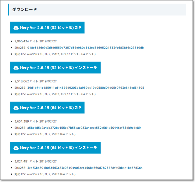 さらに、それぞれについて、インストーラ版かZip版かを選べます。