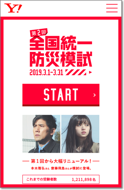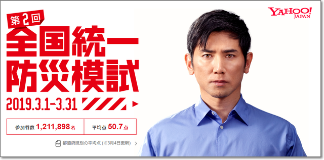 今年も、Yahoo!防災模試があります(3月中実施)。