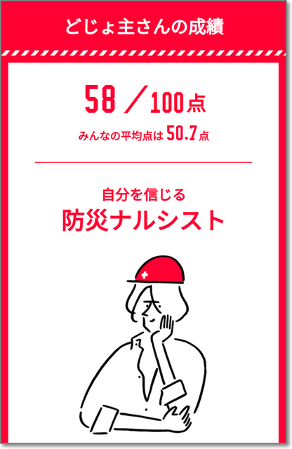 ん~、去年と同じく、「防災ナルシスト」止まりでした。