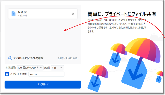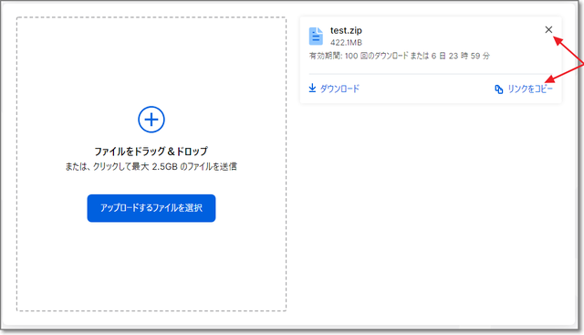 複数ファイルをアップロードしたときは、自動的にzipファイルに圧縮してくれます。