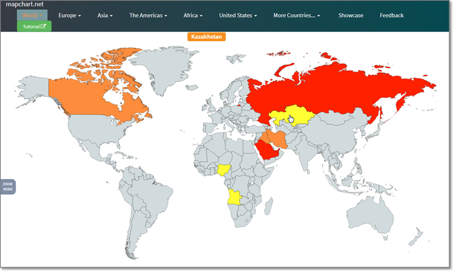国ごとに指定色で塗りつぶした世界地図を作れます。
