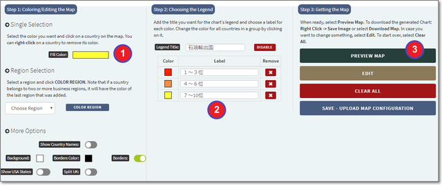 2.地図のタイトルや、色ごとの凡例を入力(日本語対応)。