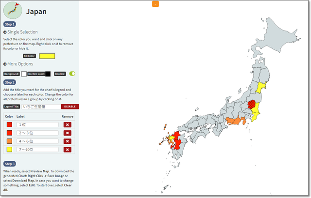 世界地図や各国地図で、塗り分け地図が作れるWebサービス。