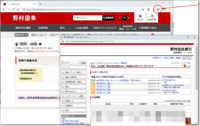 たとえば野村證券サイトから、野村信託銀行サイトを開くとき、