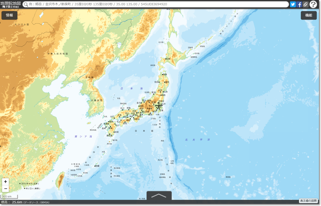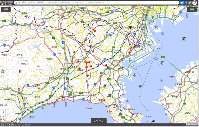 たとえば、こんなCSVファイルを、「地理院地図」画面にドラッグ&ドロップすると・・・